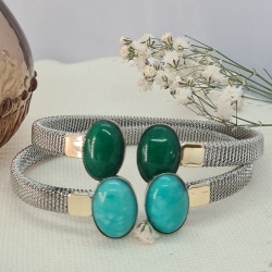 Elegante y robusta pulsera para hombre de diseño contemporáneo. Confeccionada con una suave correa de piel marrón , esta pulsera exhibe una placa de acero y aluminio en un tono verde vibrante, que añade un toque de estilo distintivo. Con una longitud de 21,5 cm