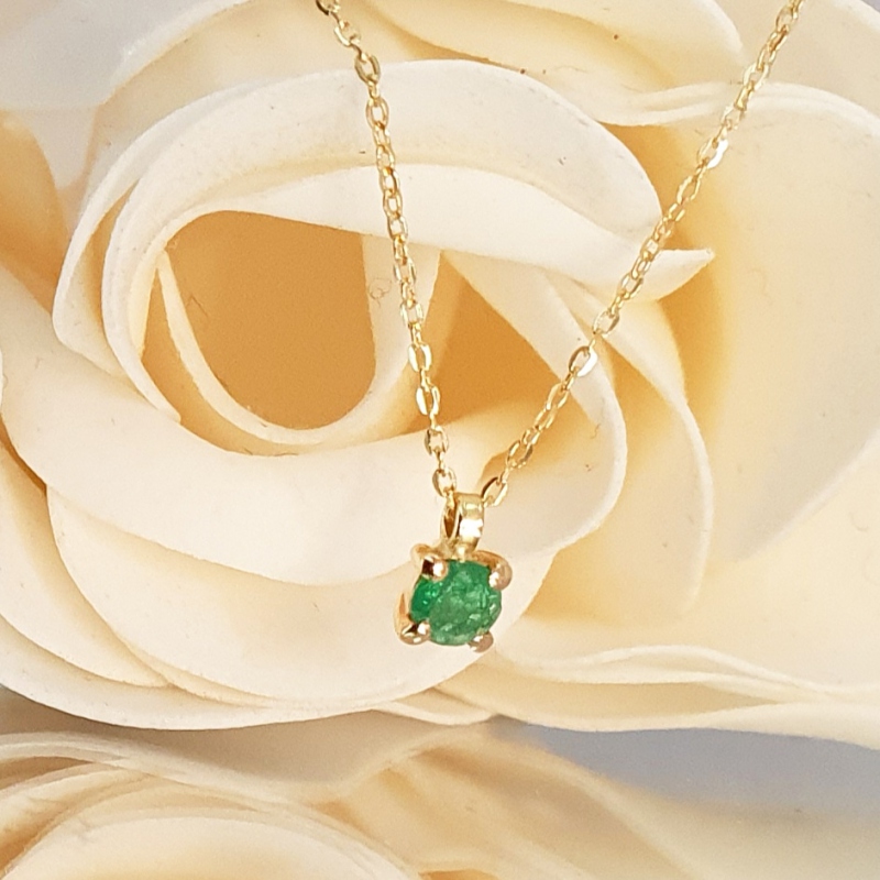 Colgante realizado en Oro de 18 kt. formado por una Esmeralda Natural en talla brillante engastada en garras.