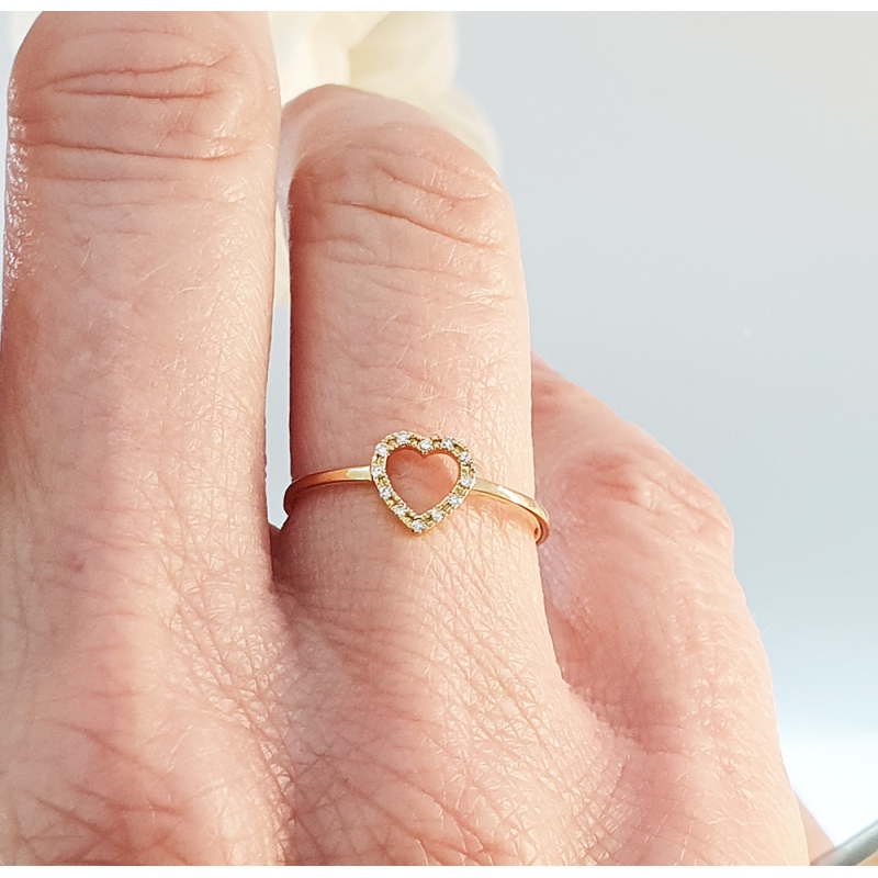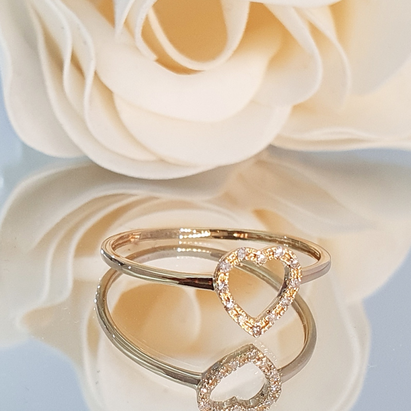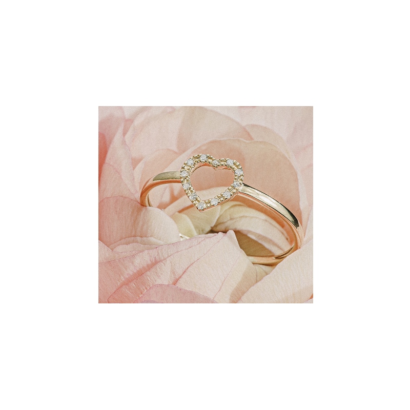 Sortija realizada en oro de 18 Kt. con Diamantes engastados en forma de corazón de la colección LET YOUR LOVE BLOOM, con un peso de 0.035 ct. color H y pureza SI.