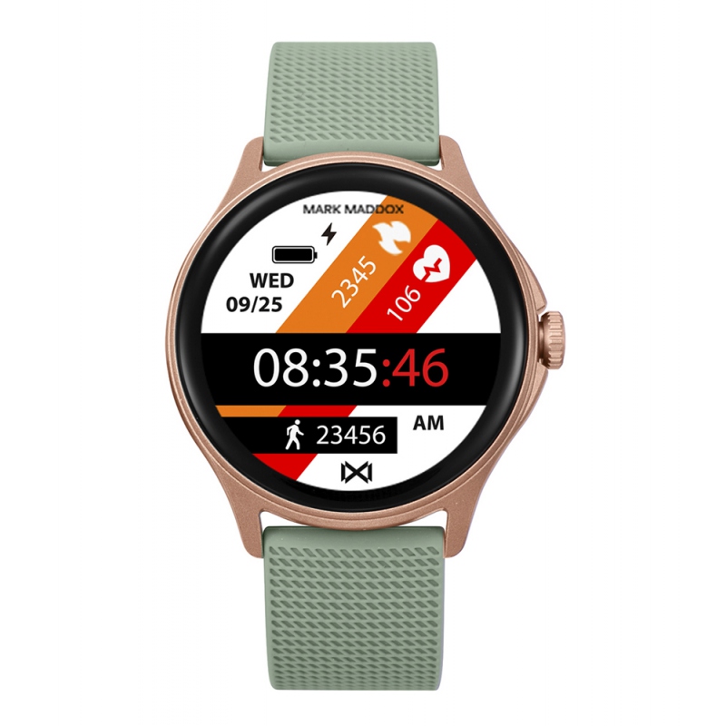 Este Smartwatch Mark Maddox SmartNow combina caja de policarbonato en color rosa y correa de silicona verde creando una combinación ideal para quienes buscan destacar mientras disfrutan de la última tecnología. Compatible con dispositivos Android 11 o superior e iOS 12 o superior.