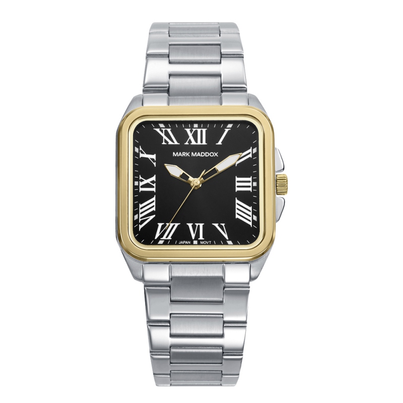 La esfera negra con números romanos y las agujas horarias en dorado aportan claridad y distinción.