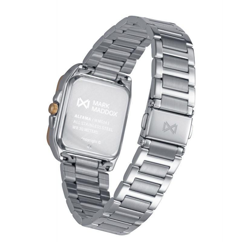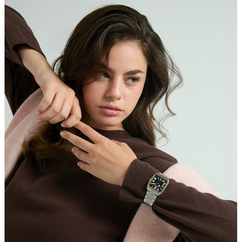 Elegancia contemporánea define este reloj de mujer, con caja bitono de acero e Ip dorado que combina sofisticación y estilo.