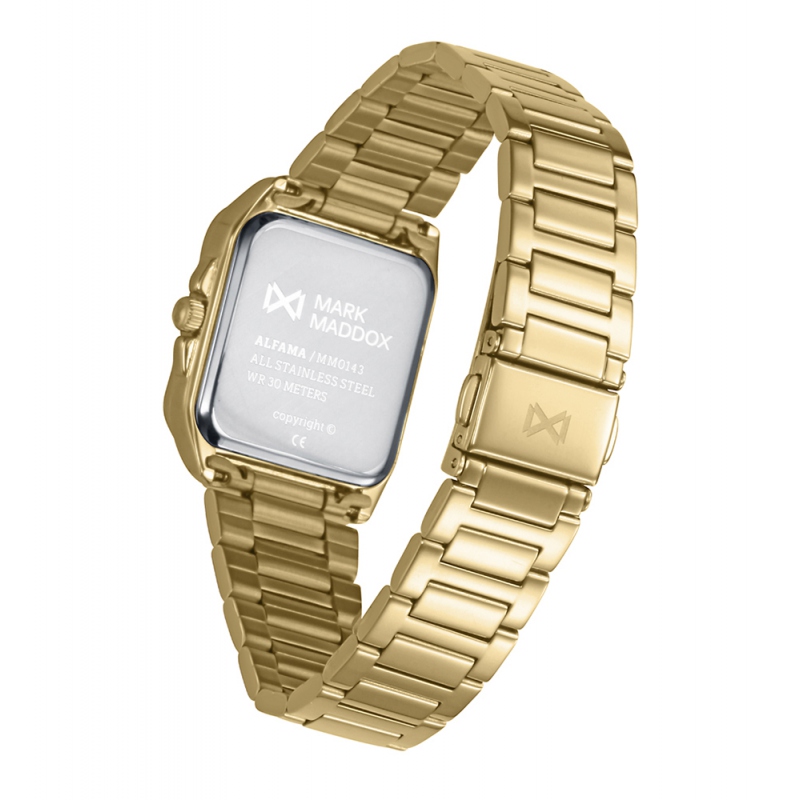 Brillo y elegancia se combinan en este reloj de mujer, que presenta caja y brazalete de acero con baño Ip dorado para un toque sofisticado y atemporal